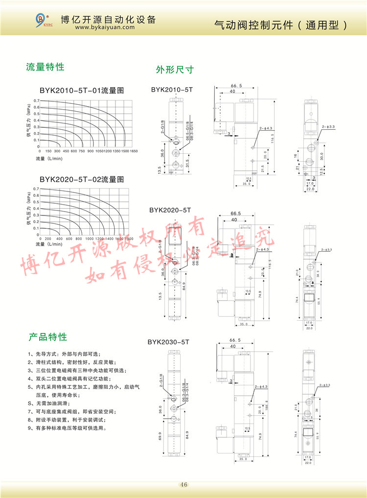 BYK/BYT200系列電控氣控型號(hào)有一分接口和二分接口的二位三通、二位五通、三位五通單電控,雙電控的各種電壓控制,更多的技術(shù)咨詢請(qǐng)聯(lián)系本公司技術(shù)部:0371-85612788。