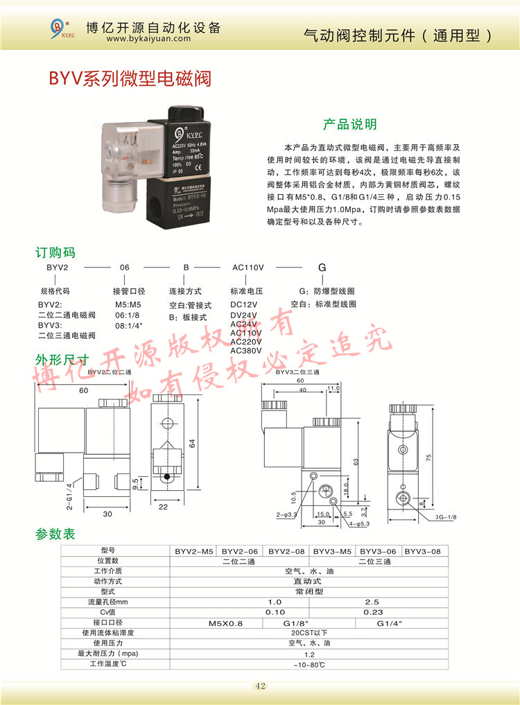 【產(chǎn)品名稱】:BYV2二位二通微型電磁閥